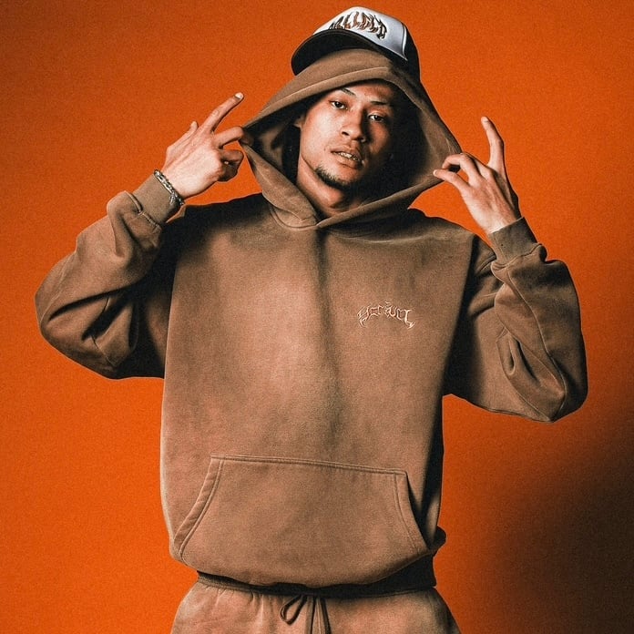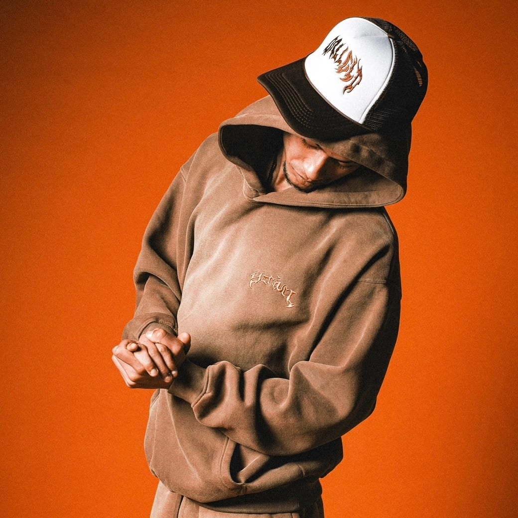 ① 古着加工が施されたフーディーは、程よい肉厚感が魅力で、リラックスした雰囲気を演出します。カジュアルシーンにもピッタリな一品です。