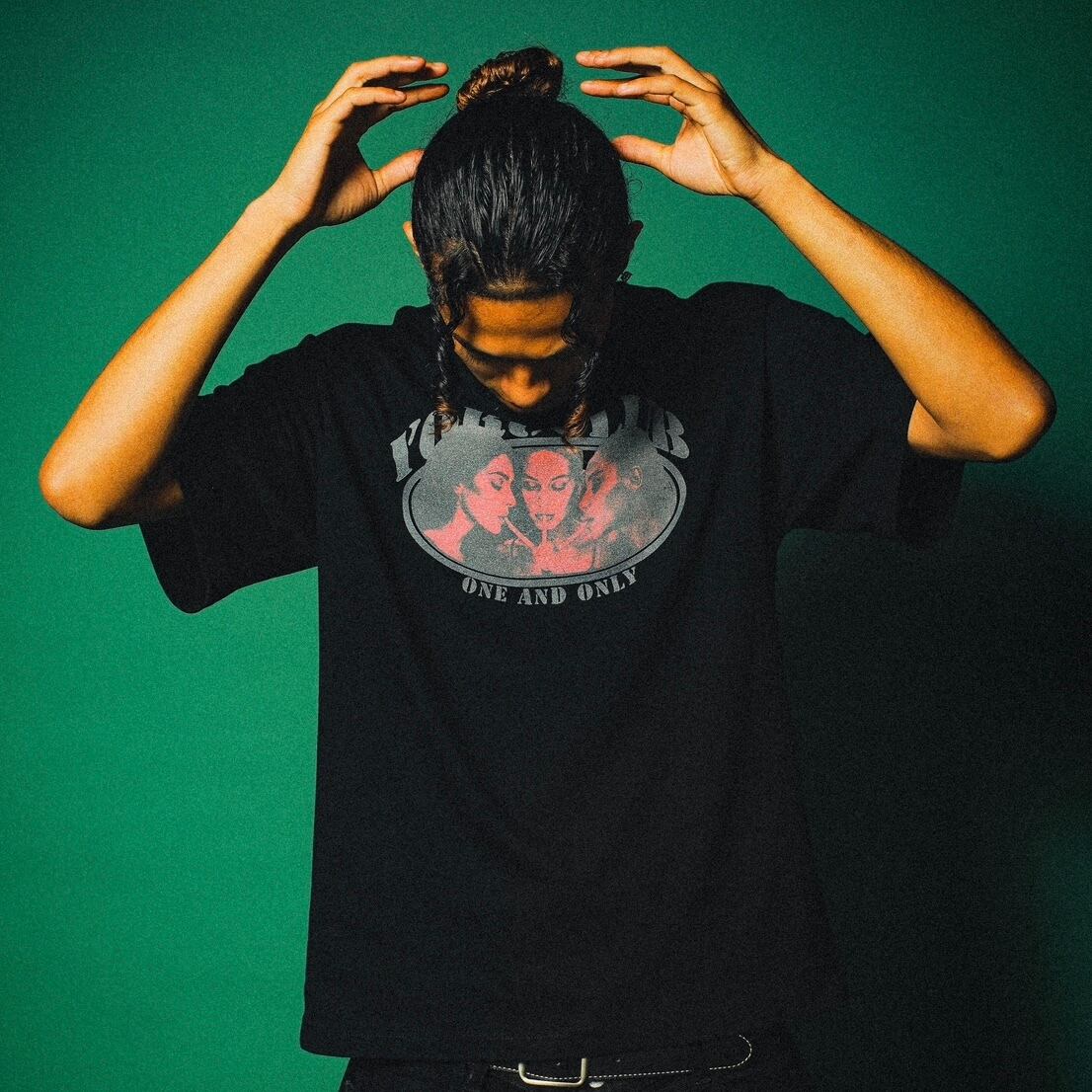① Smoking lady《セクシーな女性》をデザインした色気のある一着。YORUらしいストリートで独自性のあるフロントプリント。細部にまで宿る“らしさ”が、静かな個性を放つ。