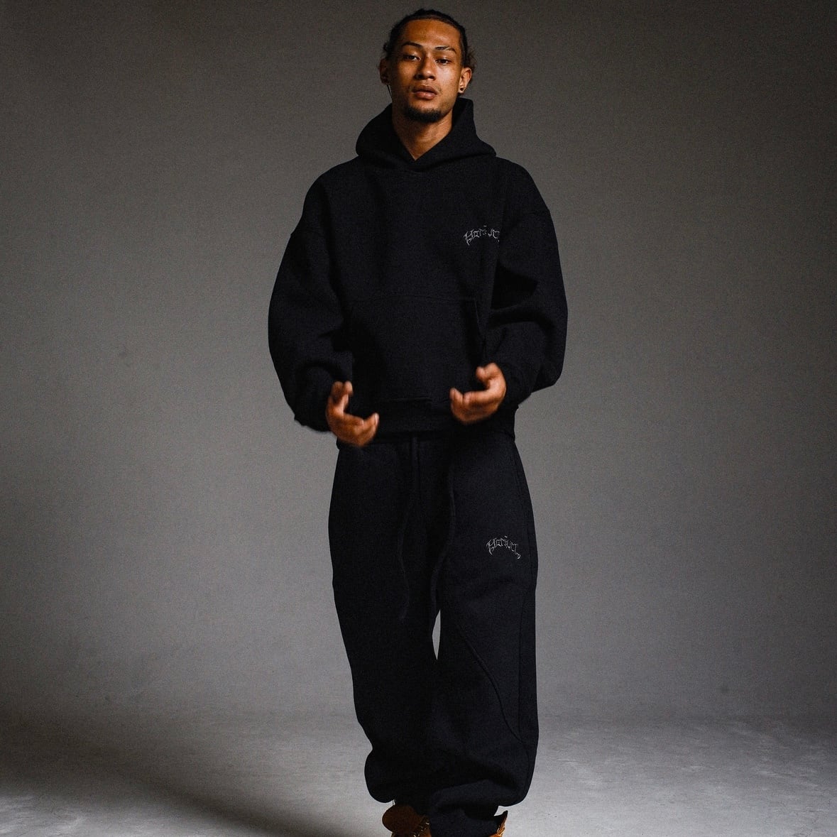 フーディとスウェットパンツを組み合わせたセットアップスタイルは、余裕と品格を同時に纏う新たなスタンダード。