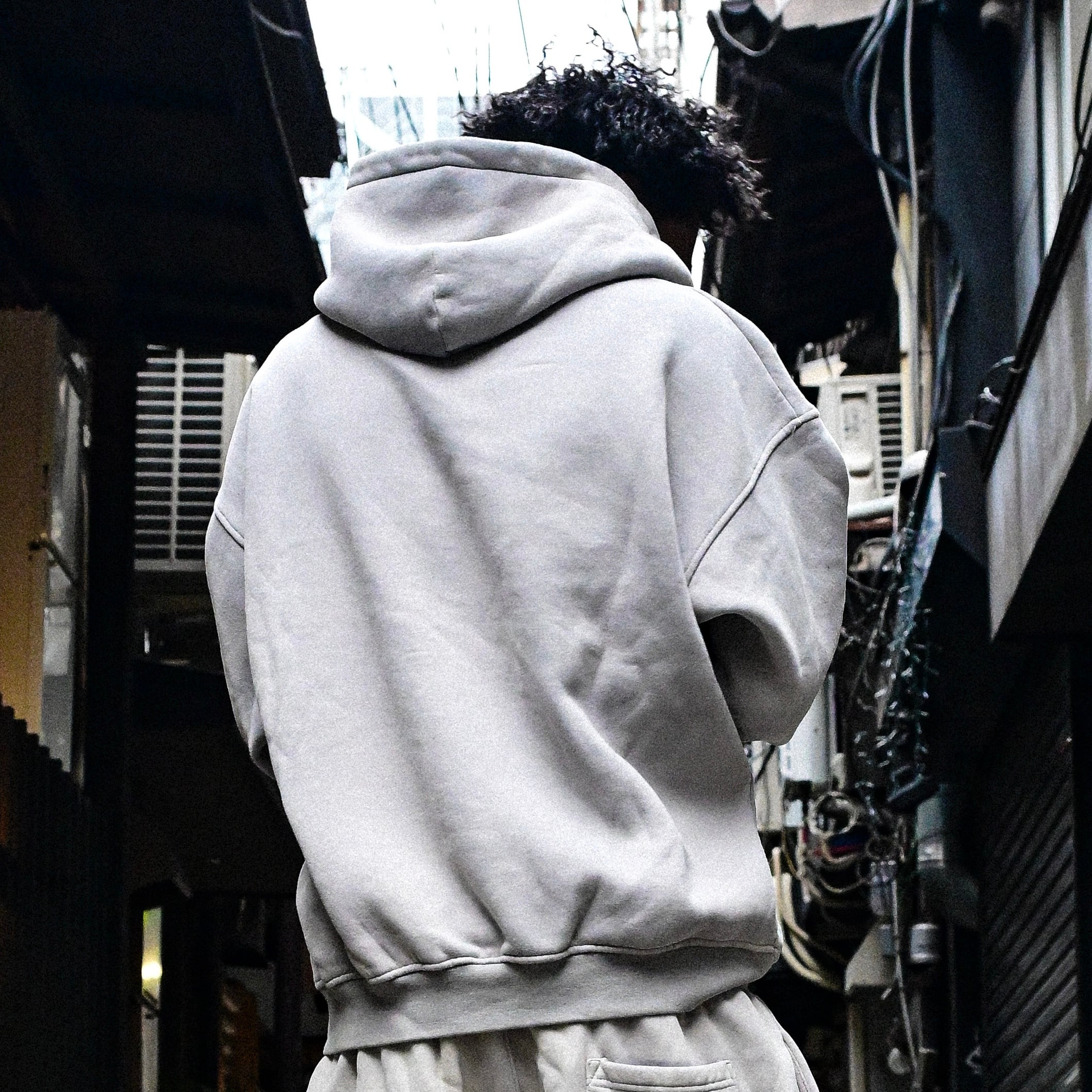 ① 古着加工が施されたフーディーは、程よい肉厚感が魅力で、リラックスした雰囲気を演出します。カジュアルシーンにもピッタリな一品です。