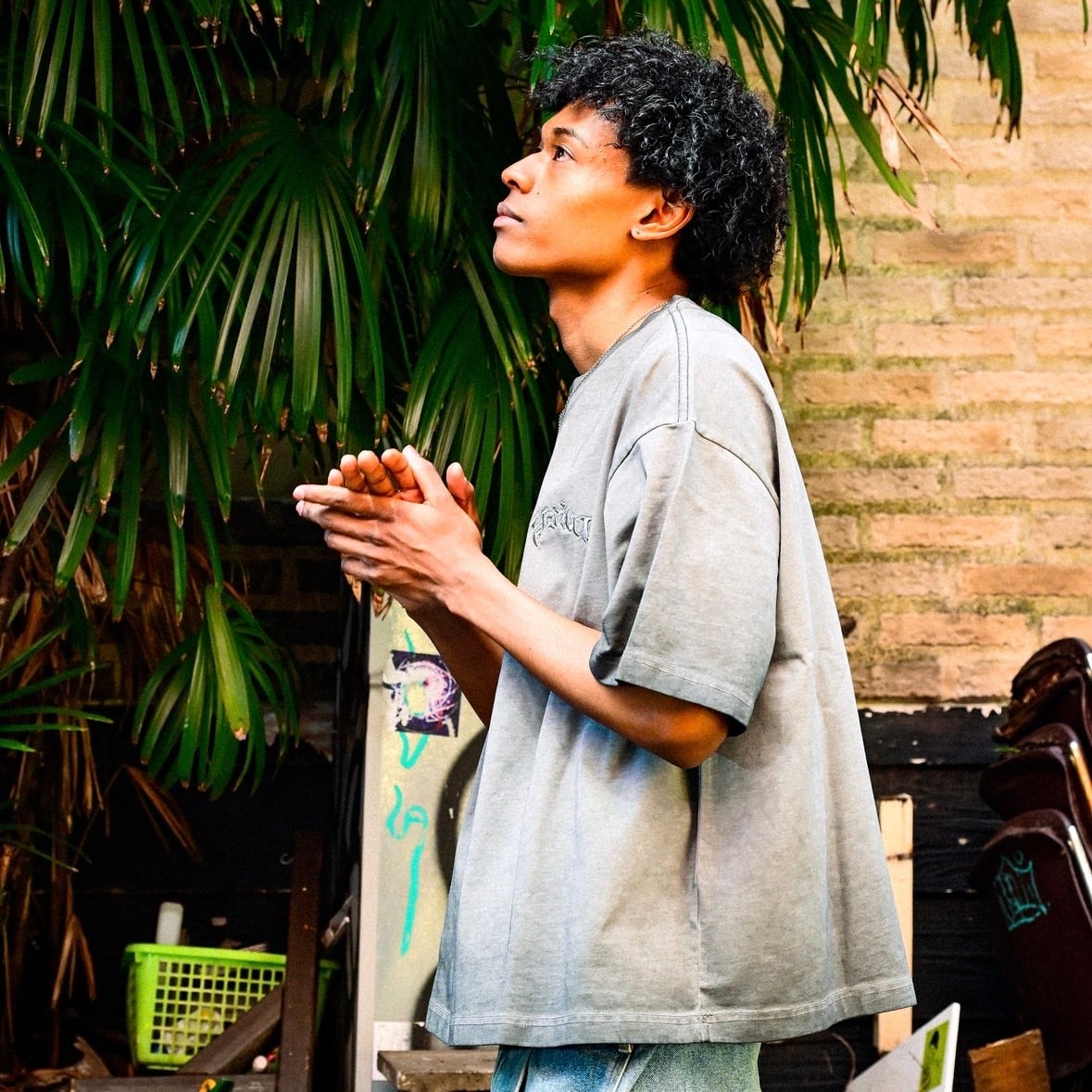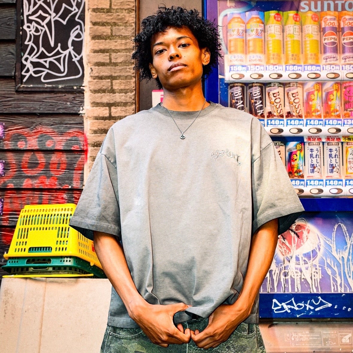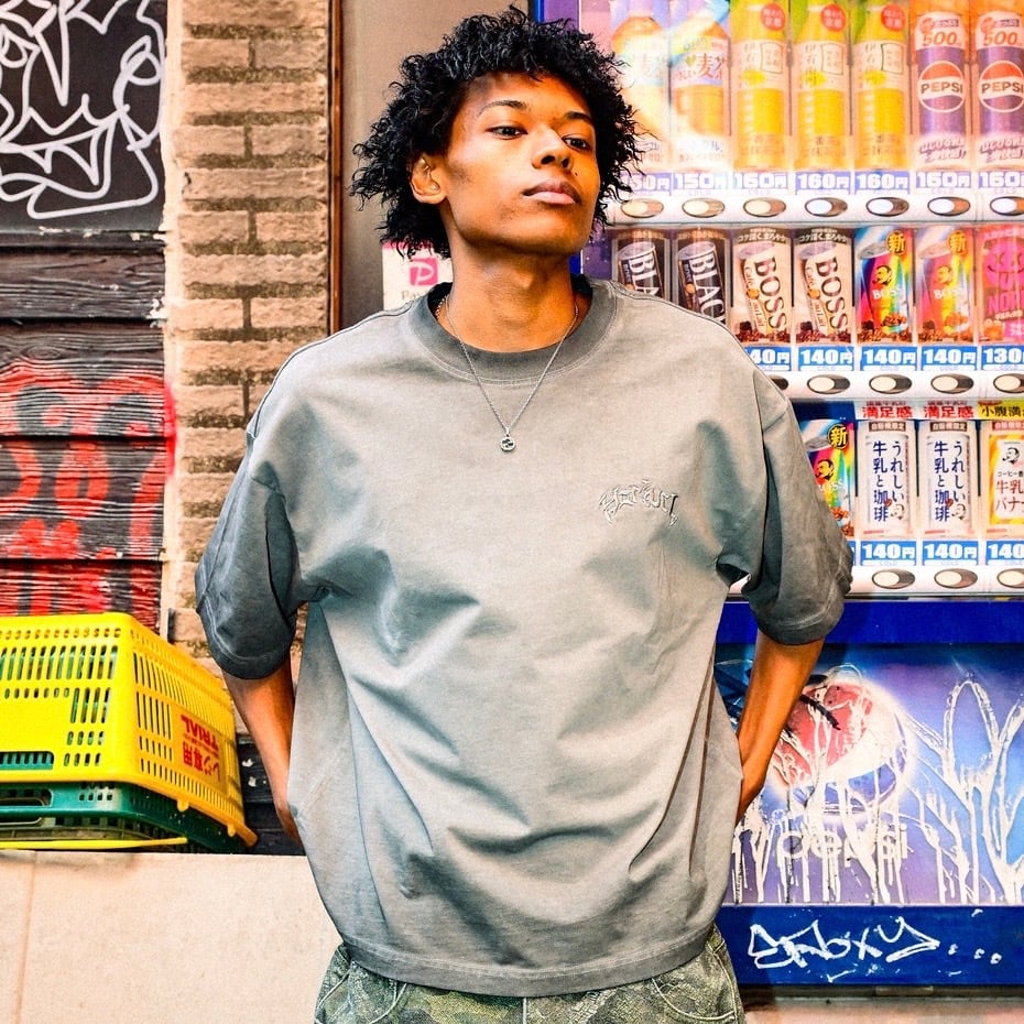 ③ YORUのOGロゴが胸元にさりげなく入ったデザインは、着るだけで独自の世界観を表現。ワイドパンツやカーゴとも相性抜群で、コーデに深みをプラスしてくれます。