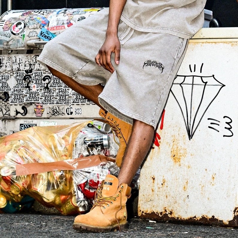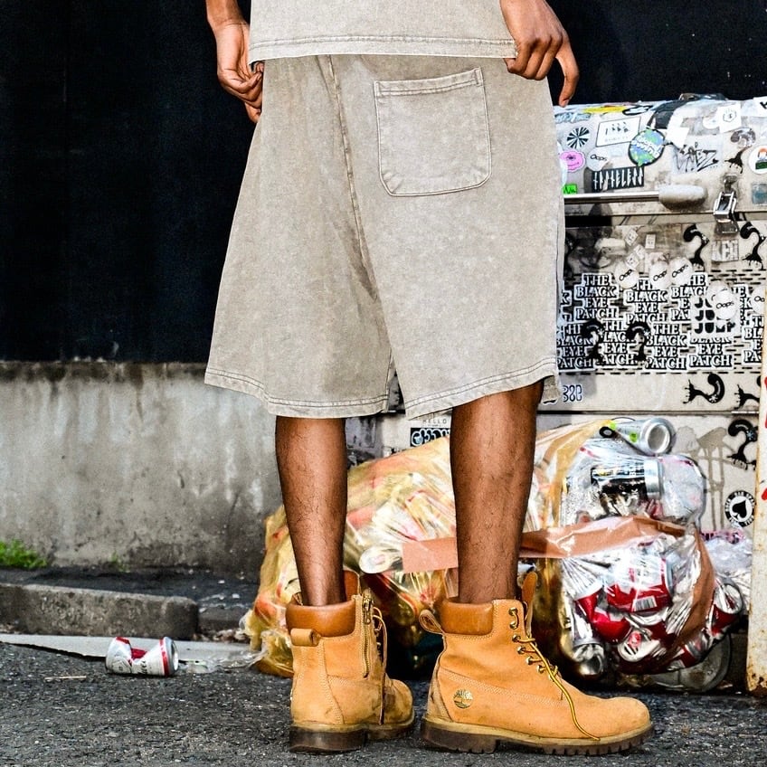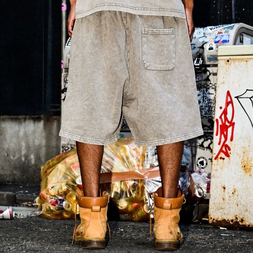 ① ピグメント加工を施したヘビーウェイトショーツは、9.4オンスの肉厚な生地感が魅力で、穿くほどに味が出るヴィンテージライクな雰囲気を演出します。ストリートシーンにもデイリーユースにもフィットする一本です。