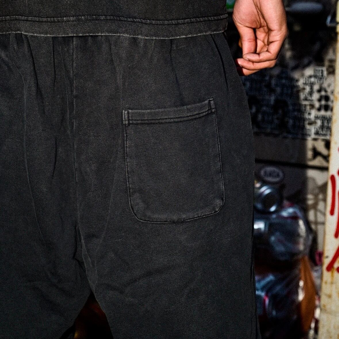① ピグメント加工を施したヘビーウェイトショーツは、9.4オンスの肉厚な生地感が魅力で、穿くほどに味が出るヴィンテージライクな雰囲気を演出します。ストリートシーンにもデイリーユースにもフィットする一本です。
