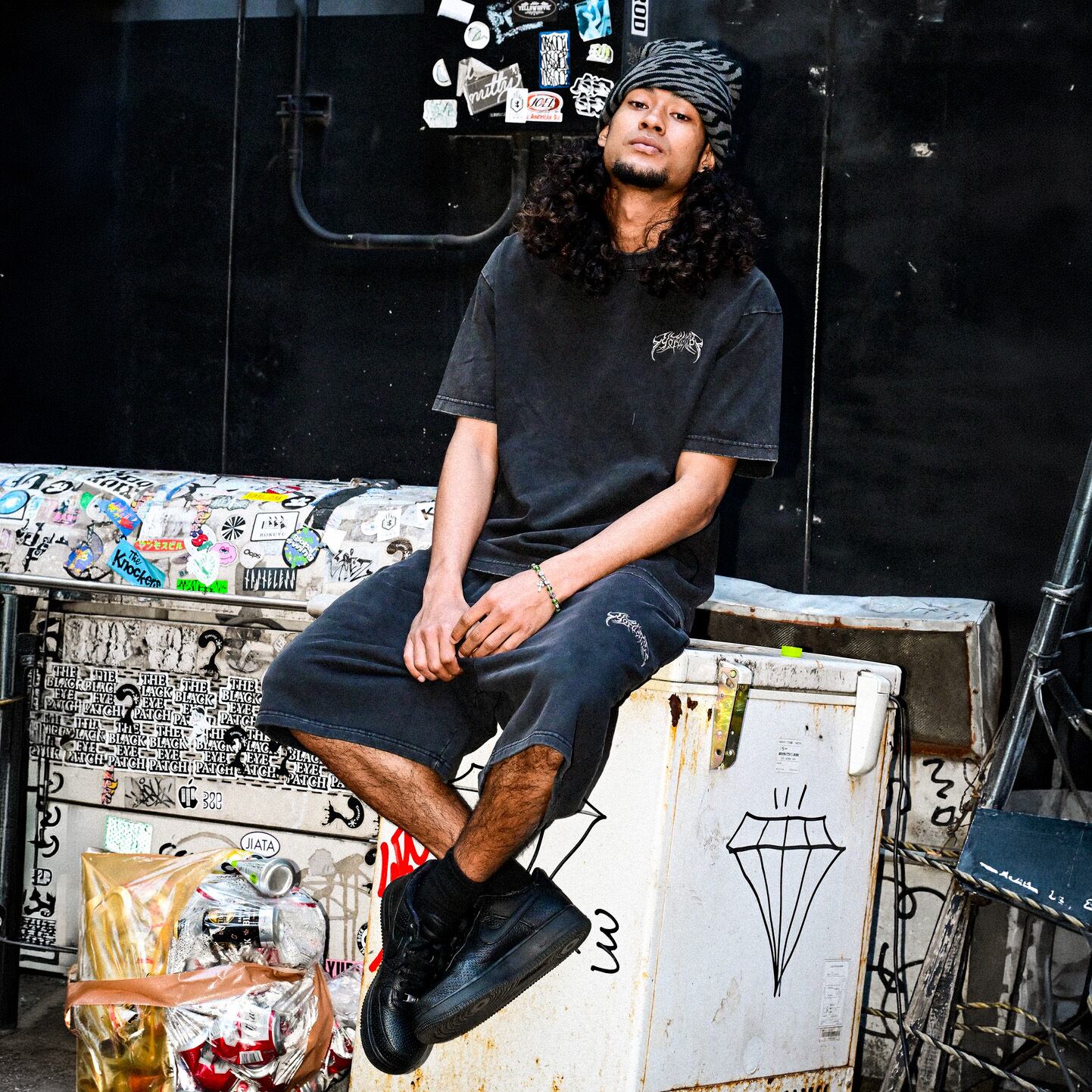 ③ YORUのOGメタルロゴが胸元にさりげなく入ったデザインは、着るだけで独自の世界観を表現。ワイドパンツやカーゴとも相性抜群で、コーデに深みをプラスしてくれます。
