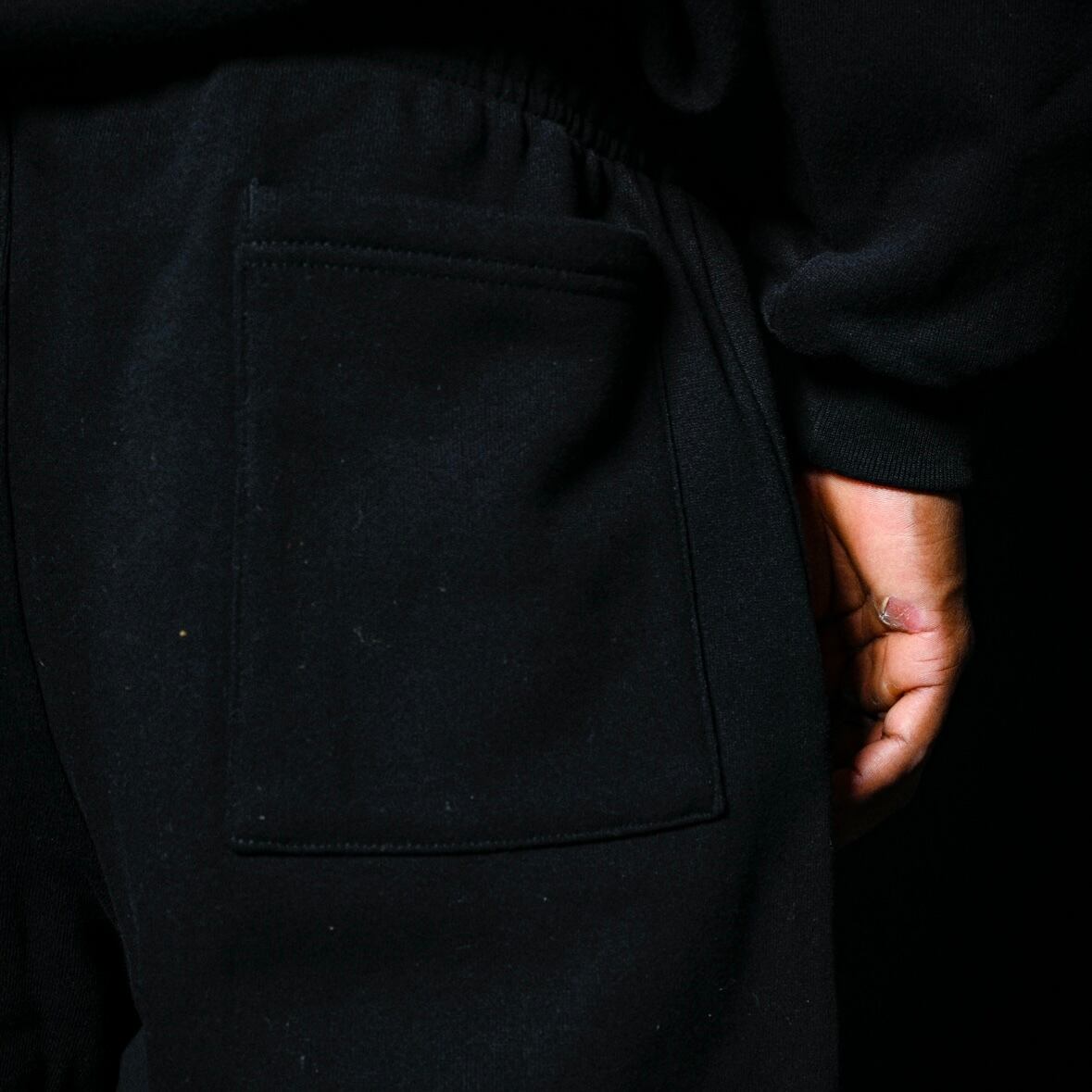 ② いま人気爆発中の裏起毛スウェットシリーズとセットアップ可能なシャーリングタイプのスウェットパンツ。